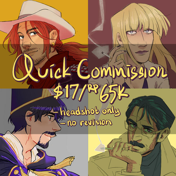 for the quick commission there'll be no revision, it'll work more like request/skeb. you can see more detail on the work flow section on this blog below.
